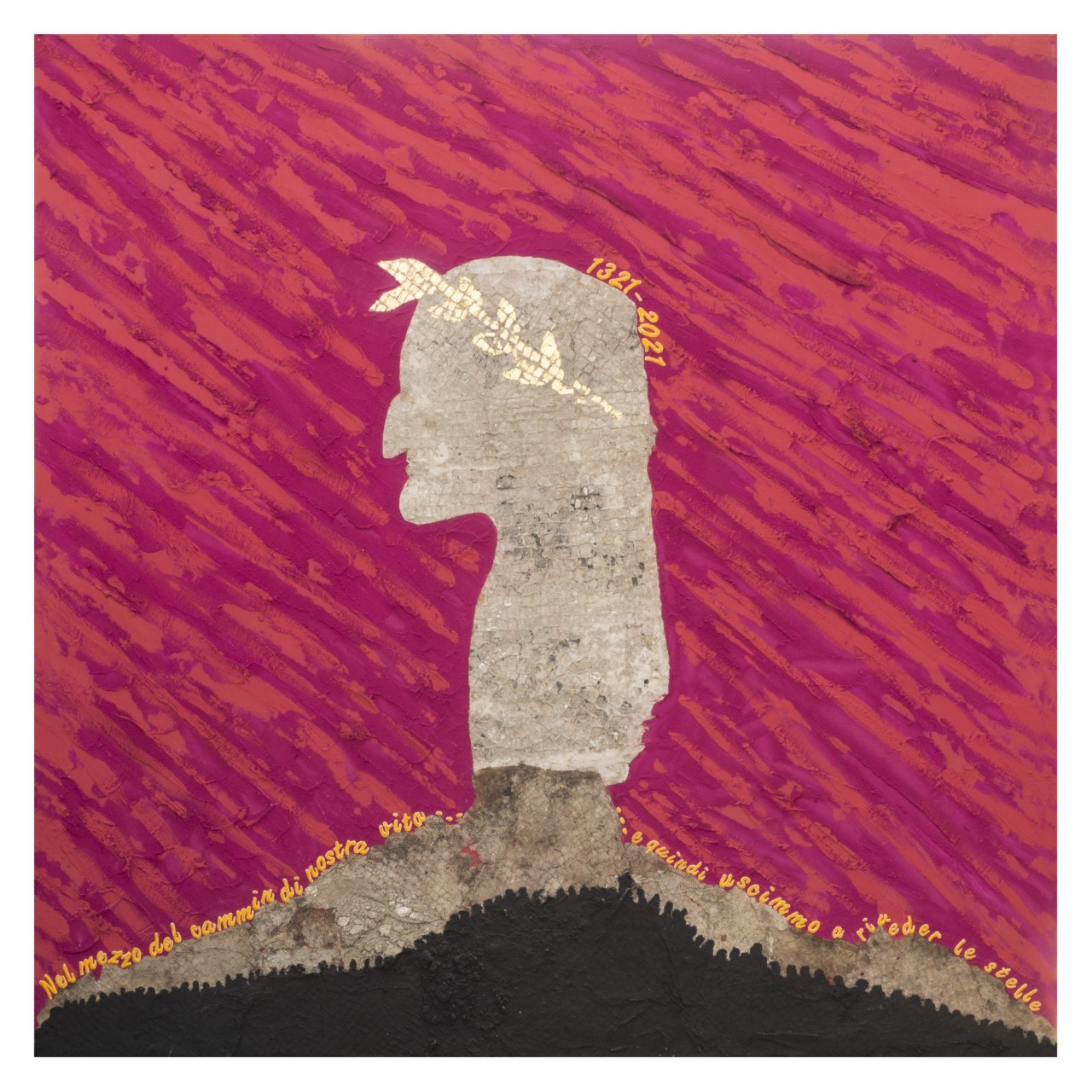Cento opere, tante quanti sono i canti della Divina commedia, trovano spazio nella Cappella laterale di Santa Maria dell’Angelo in un allestimento immersivo che idealmente conduce il visitatore ad attraversare i tre regni – inferno, purgatorio, paradiso – insieme a Dante, il cui volto emerge solenne da una installazione in terracotta nera e oro.